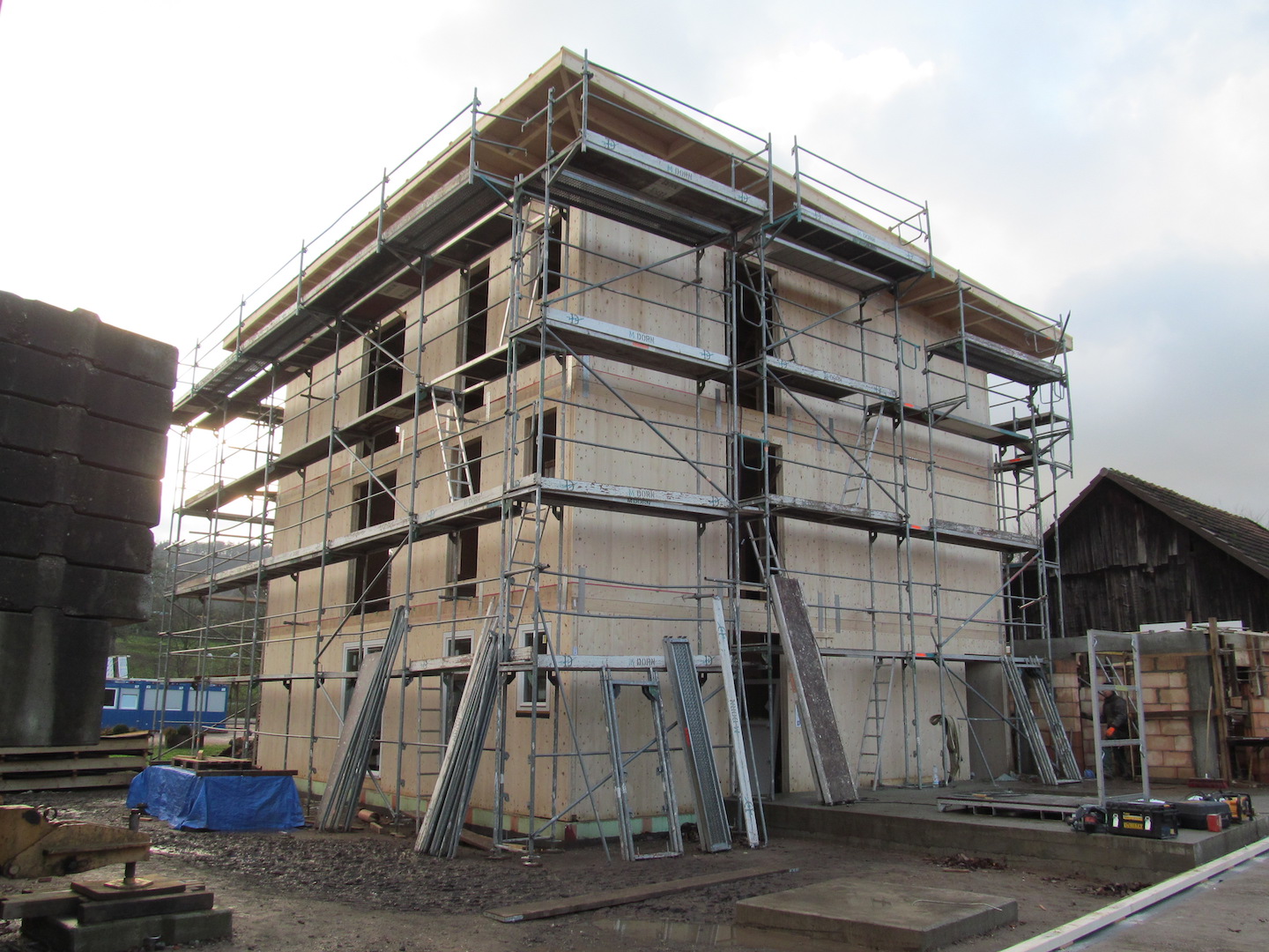 quick realisation of the shell structure (usual time needed up to 9 month – with NUR-HOLZ mass timber only up to 1 month for a co-housing site and 1 day for a normal family home)